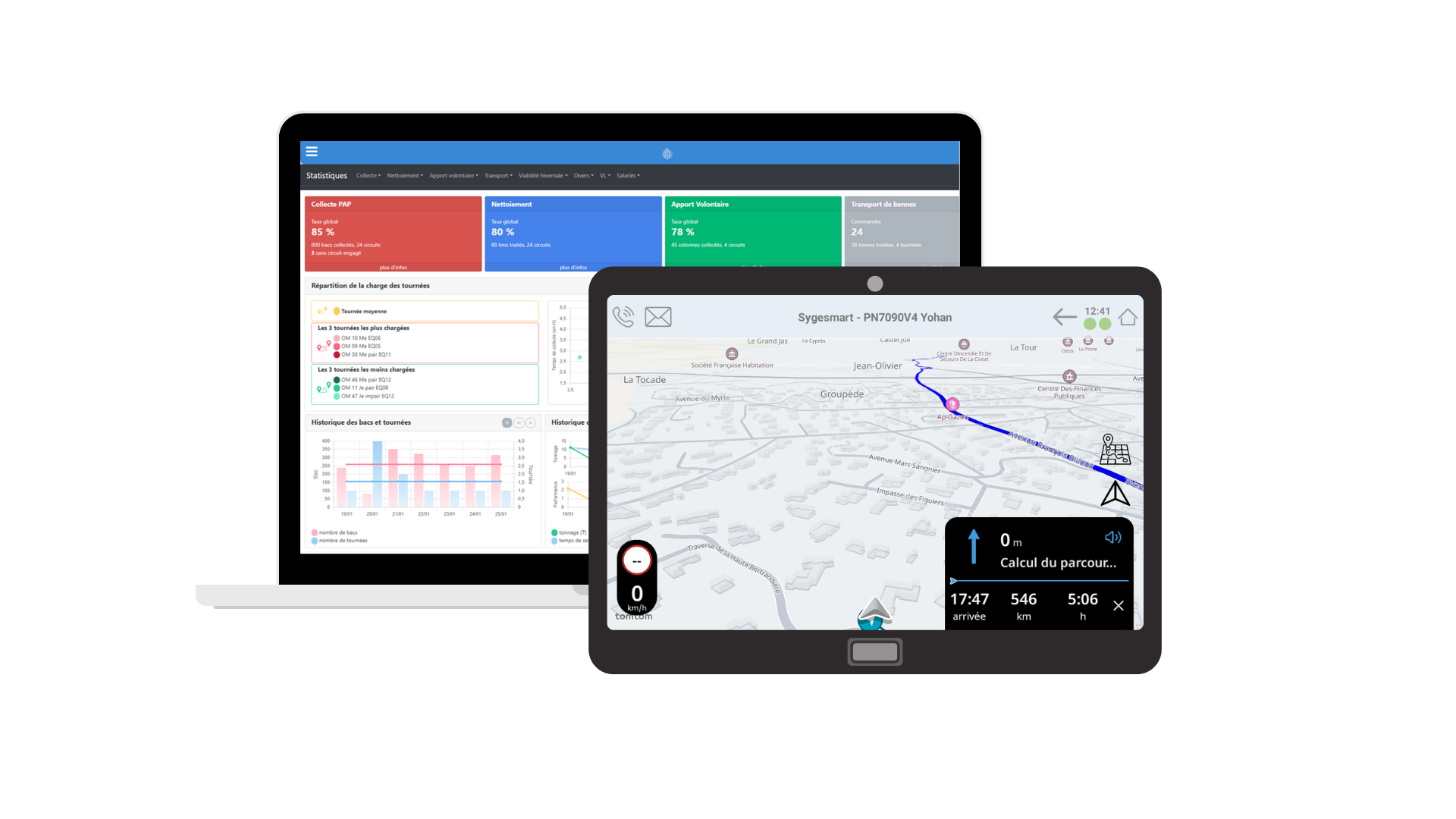 Une solution complète pour créer, piloter et suivre en temps réel des tournées optimisées, adaptées aux besoins quotidiens de la collectivité.